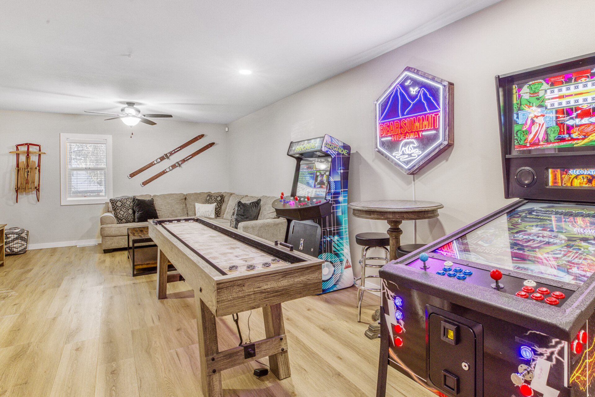 ☞ Game Room (Bottom Level) Featuring Shuffleboard, Pinball & Arcade Games