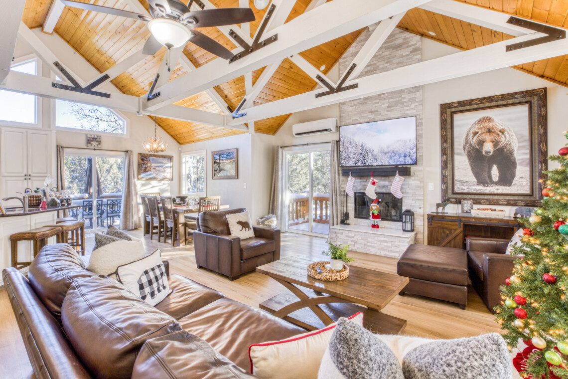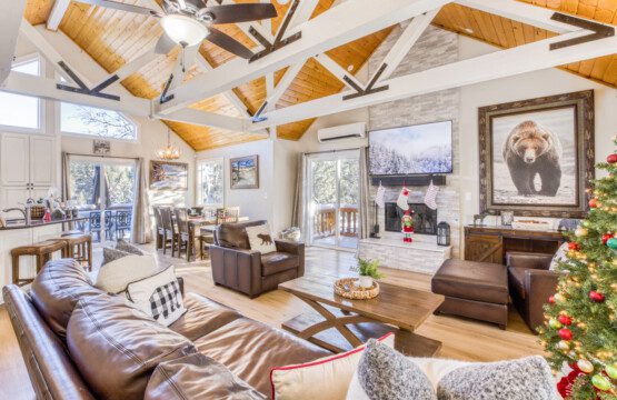 Welcome to Bear Summit Hideaway, a luxurious 3-level retreat in the heart of Big Bear Lake. From the gorgeous wood-burning fireplace to vaulted ceilings, this custom cabin is the perfect mountain getaway for families, friends, or romantic escapes.