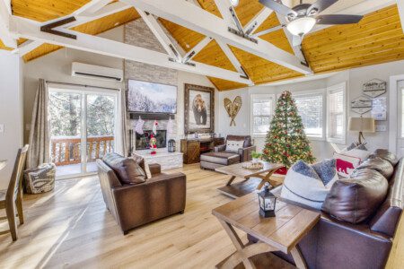 Whether you're chasing snowy slopes or summer serenity, Bear Summit Hideaway is your perfect mountain escape. Just a 5-minute, ¼-mile walk to Bear Mountain Ski Resort, it's the ideal base for winter fun like skiing, snowboarding, and cozy après-ski nights.
